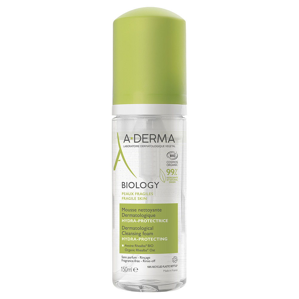 Ο ενυδατικός, προστατευτικός, δερματολογικός αφρός καθαρισμού Biology Mousse Nettoyante Dermatologique της A-Derma αφαιρεί το μακιγιάζ και συγχρόνως καθαρίζει αποτελεσματικά και απαλά το εύθραυστο δέρμα στο πρόσωπο.