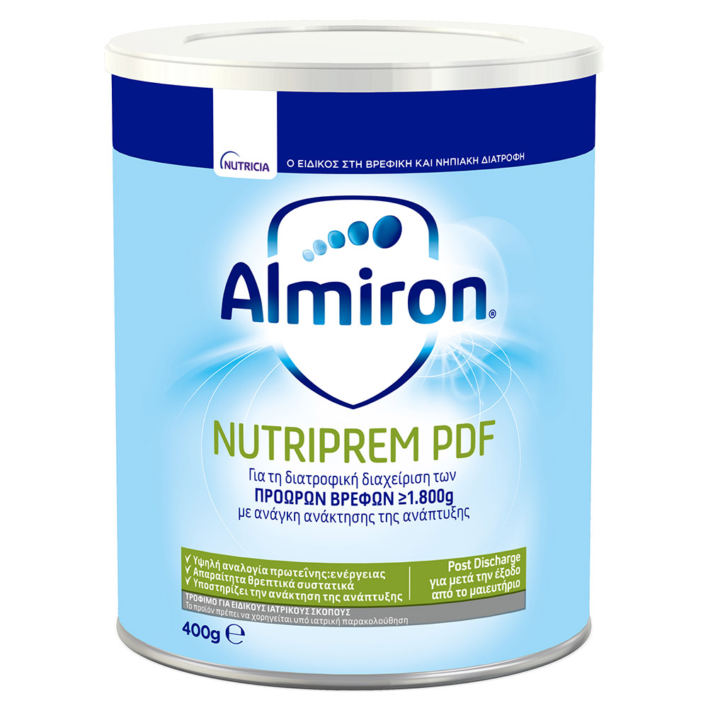 Το Almiron NutriPrem PDF είναι τρόφιμο για ειδικούς ιατρικούς σκοπούς, για τη διατροφική διαχείριση των πρόωρων βρεφών ≥ 1.800gr με ανάγκη ανάκτησης της ανάπτυξης.