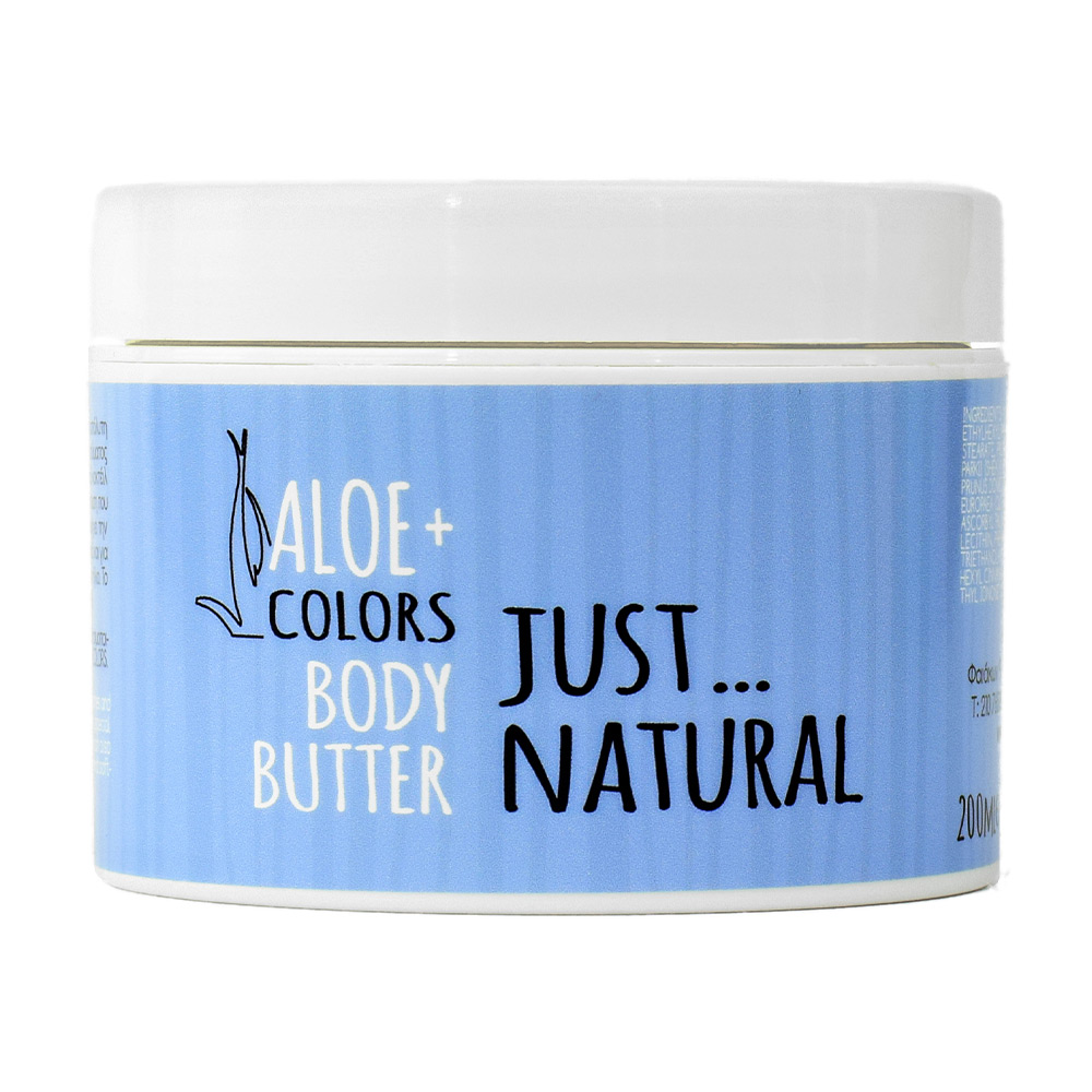 Πλούσιο Body Butter Just Natural της Aloe+Colors με υπέροχο άρωμα φρεσκάδας, ιδανικό για την καθημερινή ενυδάτωση που έχει ανάγκη η επιδερμίδας σας.