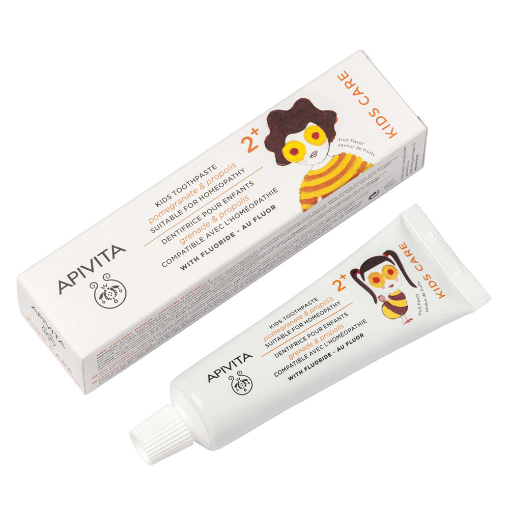 Η Apivita Οδοντόκρεμα Kids2+ περιέχει Ρόδι & Πρόπολη. Συσκευασία 50ml