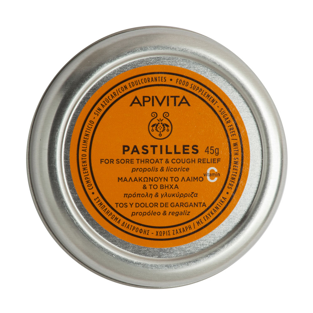 Οι Apivita Παστίλιες περιέχουν Πρόπολη & Γλυκύρριζα. Συσκευασία 45gr