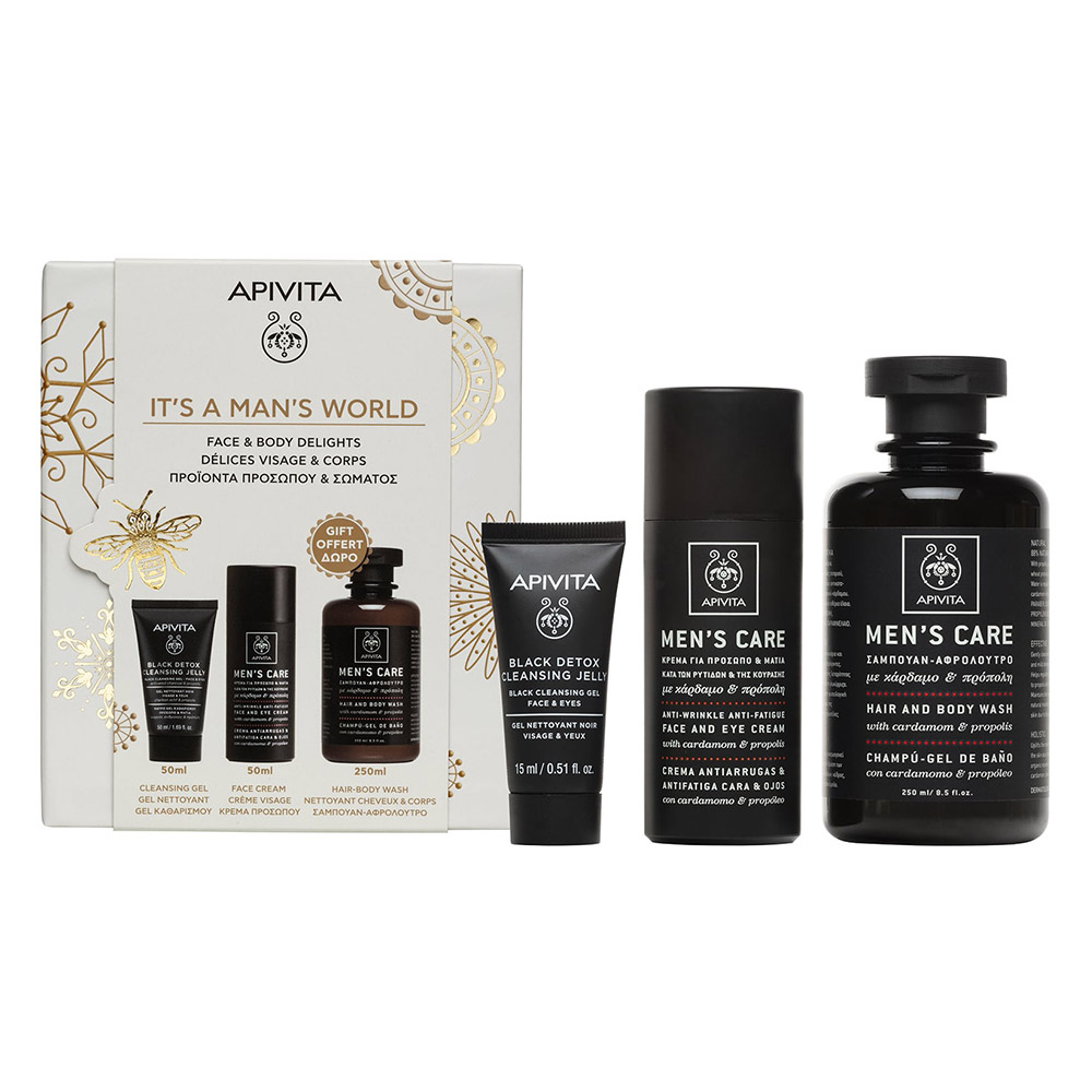 Apivita Promo Pack Men’s Care Face Cream 50ml, Black Detox Cleansing Gel 50ml & ΔΩΡΟ Men’s Care Hair – Body Wash 250ml