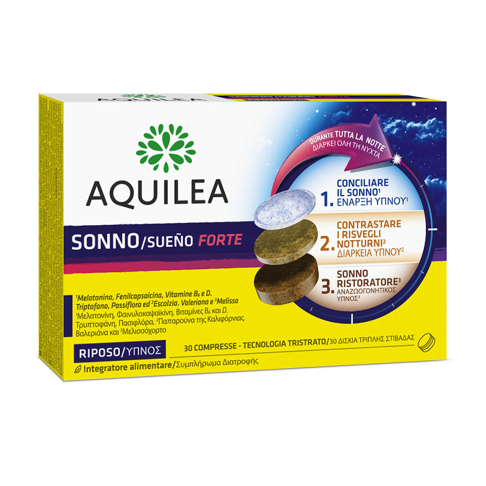 Το Aquilea Sueno Forte υποστηρίζει φυσικά τη χαλάρωση και τον ποιοτικό ύπνο με μελατονίνη και φυτικά εκχυλίσματα.