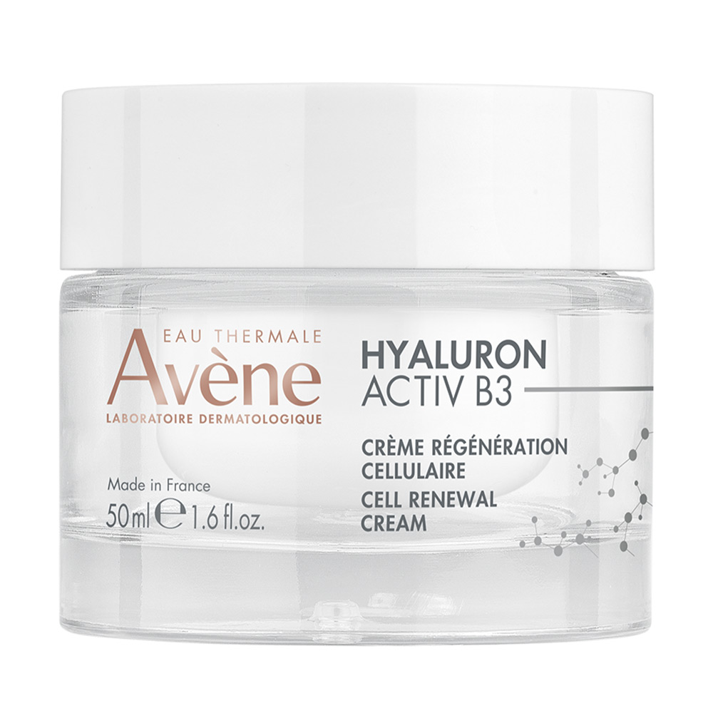 Η κρέμα κυτταρικής ανανέωσης Hyaluron Activ B3 Creme Regeneration Cellulaire της Avene είναι συμπυκνωμένη σε υαλουρονικό οξύ και νιασιναμίδη, τα οποία διεγείρουν τα κύτταρα και παρατείνουν τη διάρκεια ζωής τους.