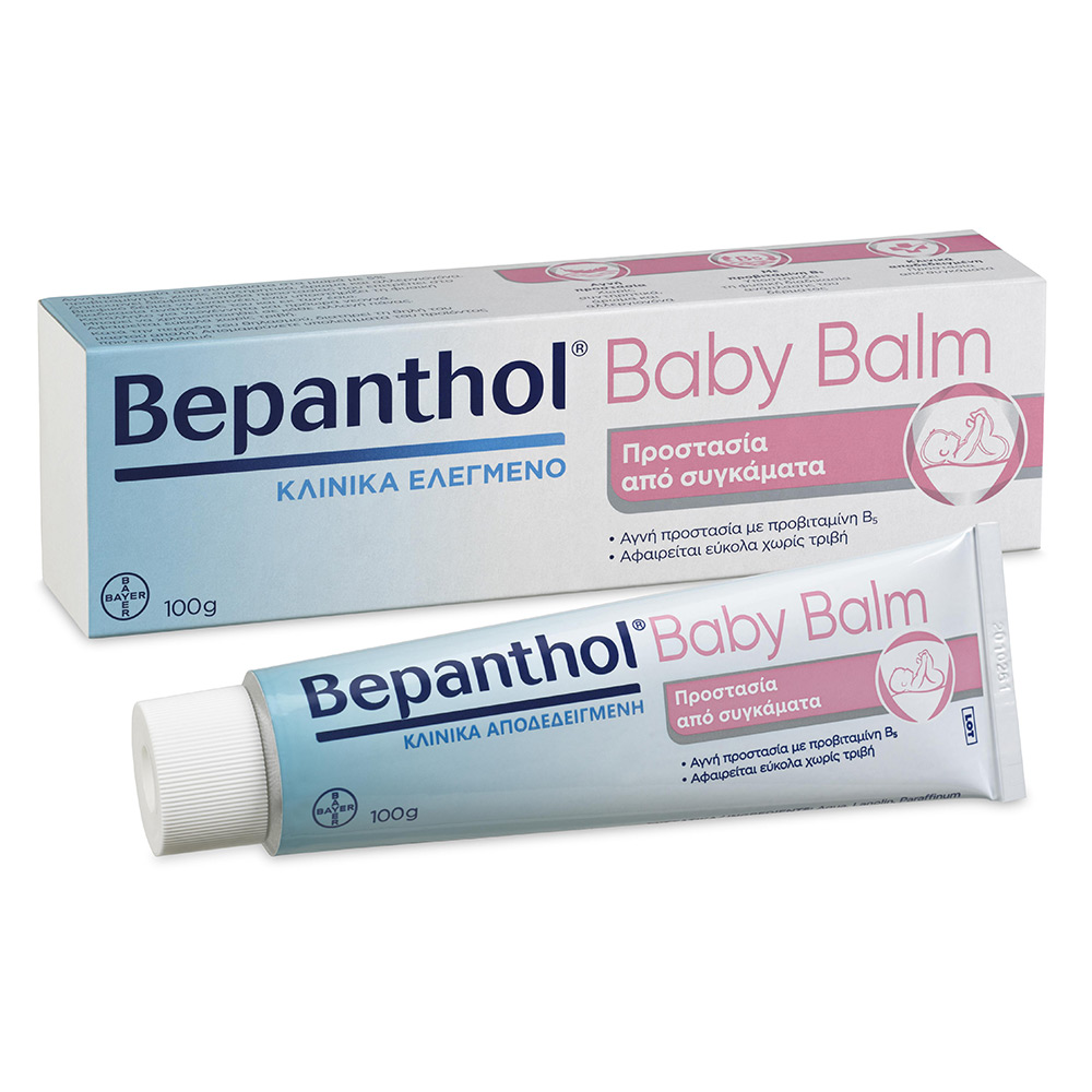 Βοηθήστε το μωράκι σας να απαλλαχθεί από το ενοχλητικό σύγκαμα και τους επίπονους ερεθισμούς με το Bepanthol Balm σύγκαμα μωρού & ερεθισμένο δέρμα. Με 5% προβιταμίνη Β5 υποστηρίζει την φυσική διαδικασία ανάπλασης του δέρματος στα μωρά και τα νεογνά, και σχηματίζει ένα διαφανές στρώμα που επιτρέπει στο ευαίσθητο δέρμα του μωρού να αναπνέει. Δεν περιέχει parabens ή άλλα συντηρητικά, αρώματα ή χρωστικές ουσίες.