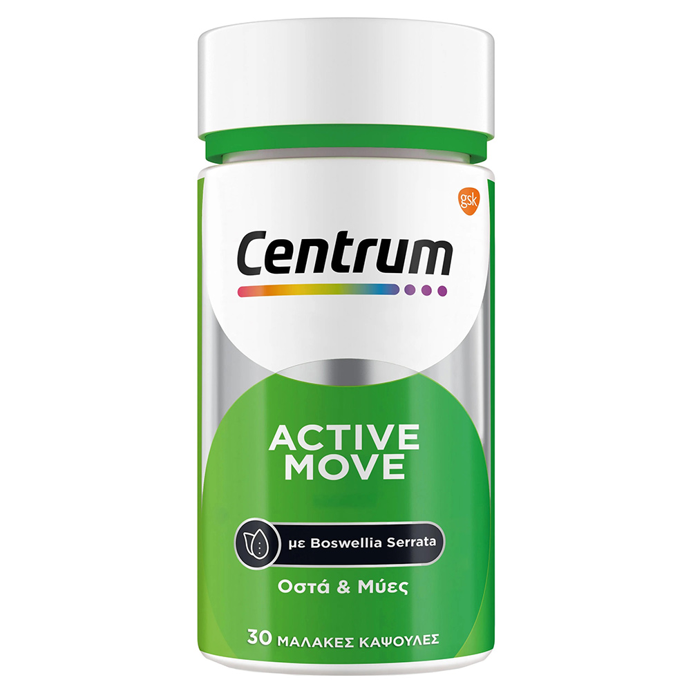 Υποστηρίξτε την δύναμη των οστών, των μυών και της καλής λειτουργίας της καρδίας σας, με μία κάψουλα Centrum Active Move την ημέρα! Αποτελεί ένα συμπλήρωμα διατροφής για την υποστήριξη των ατόμων με μία πιο ενεργητική καθημερινότητα χάρη στην αντιφλεγμονώδη και αντιαρθρητική δράση των συστατικών του.