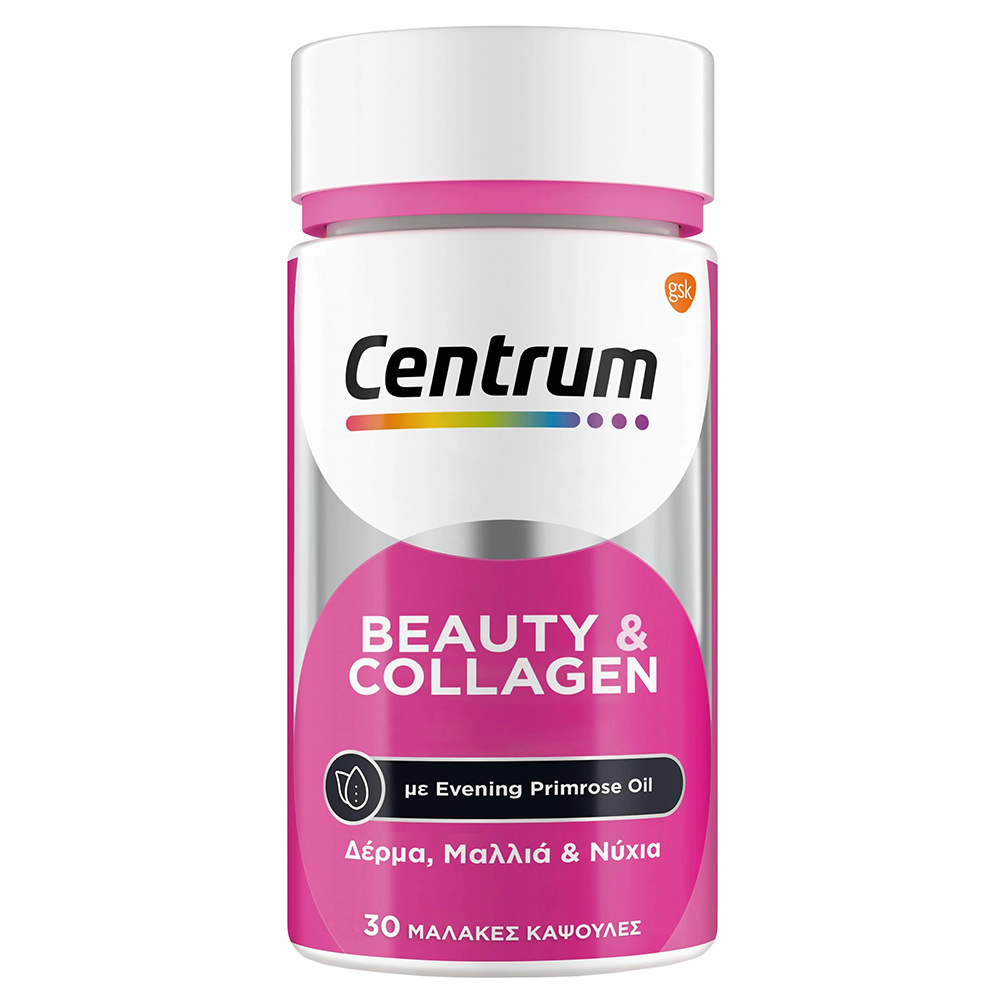 Το Centrum Beauty & Collagen είναι ένα συμπλήρωμα διατροφής με βιταμίνες, μέταλλα, κολλαγόνο και έλαιο νυχτολούλουδου για την ενίσχυση της υγείας και της ομορφιάς του σώματος.