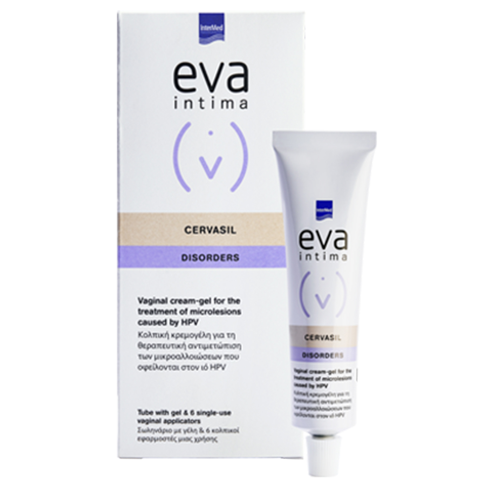 Το Eva Intima Cervasil cream-gel αποτελεί μια ειδικά σχεδιασμένη κολπική κρεμογέλη για τη διαχείριση κολποτραχηλικών αλλοιώσεων που οφείλονται στον ιό του HPV.