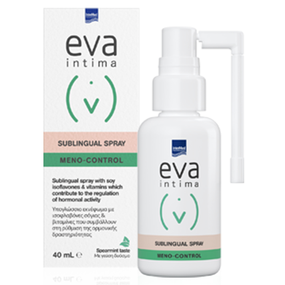 Το συμπλήρωμα διατροφής Eva Intima Meno-Control Spray της Intermed σε μορφή υπογλώσσιου εκνεφώματος είναι κατάλληλο για την κάλυψη των καθημερινών αναγκών της σύγχρονης γυναίκας που διανύει την περιεμμηνοπαυσιακή περίοδο (προ-εμμηνόπαυση, εμμηνόπαυση, μετ-εμμηνόπαυση).