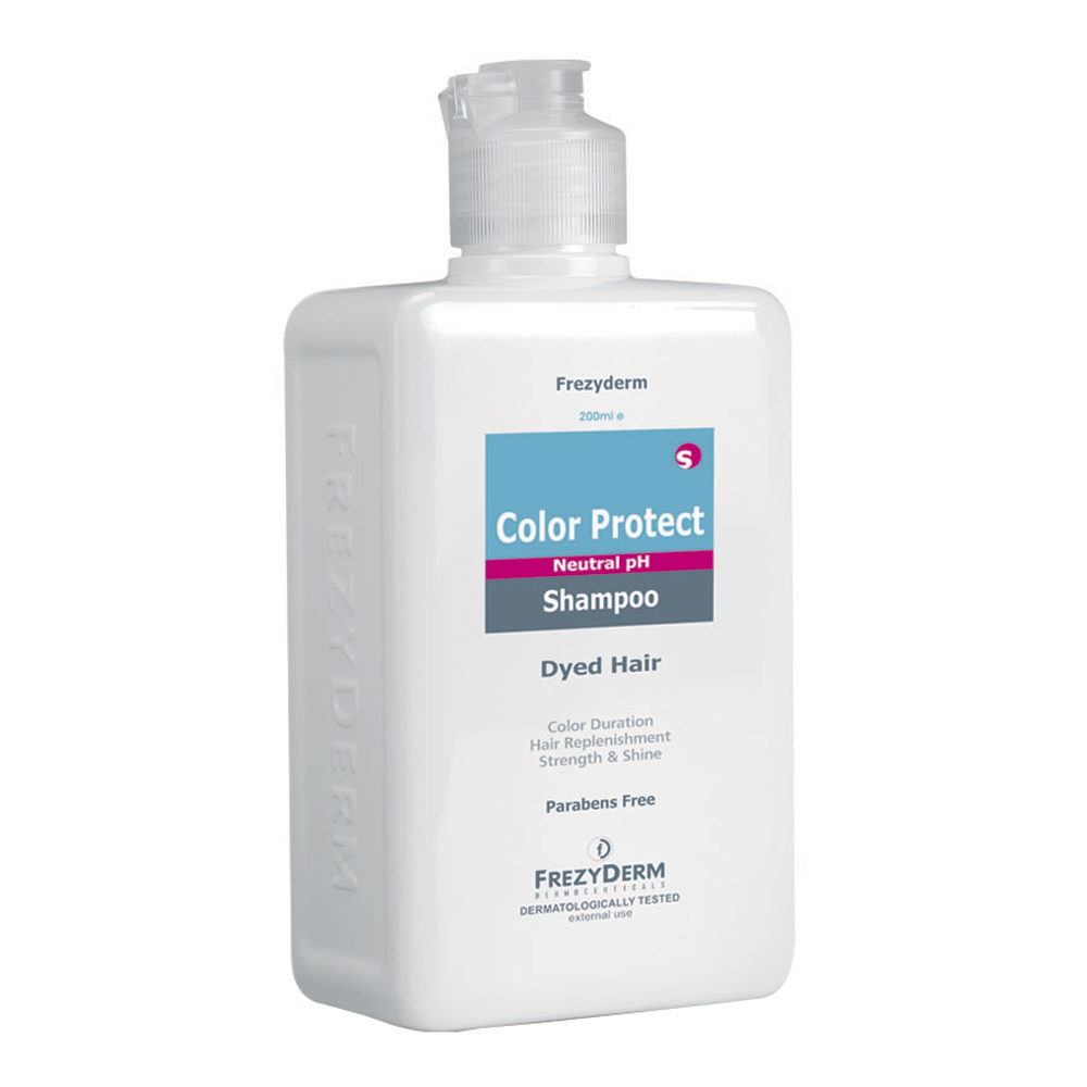 Απαλό σαμπουάν Frezyderm Color Protect Shampoo το οποίο προστατεύει το χρώμα των βαμμένων και των φυσικών μαλλιών. Τα μαλλιά προστατεύονται από το ξεθώριασμα, που προκαλεί η UV ακτινοβολία, η ατμοσφαιρική ρύπανση καθώς και το συχνό λούσιμο. Περιέχει εξειδικευμένα για τα μαλλιά αντιηλιακά φίλτρα προστασίας που προλαμβάνουν τη φθορά και δημιουργούν μια ασπίδα προστασίας από την καταστροφική δράση του ήλιου ενώ το εκχύλισμα Ηλίανθου που αναδομεί την τρίχα σε βάθος και ενισχύει τη φυσική της άμυνα, κάνει το χρώμα των μαλλιών να διατηρεί τη δύναμη και τη ζωντάνια του ενώ αυξάνεται η αντοχή του η φυσική λάμψη έως και 46% (κλινική μελέτη).