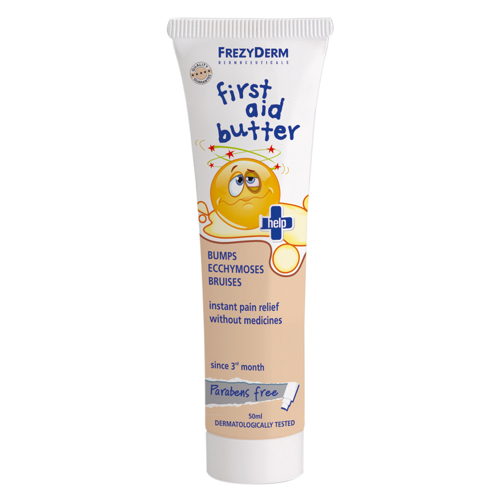Gel Frezyderm First Aid Butter που αντιμετωπίζει χτυπήματα, εκχυμώσεις και μώλωπες σε πρόσωπο και σώμα. Προσφέρει παυσίπονη δράση για άμεση ανακούφιση, μειώνει τα οιδήματα, καταπραΰνει τις φλεγμονές, προστατεύει από τη δημιουργία μώλωπα και ενισχύει τη μικροκυκλοφορία. Κατάλληλο και για βρέφη από τον 3ο μήνα, παιδιά, ενήλικες. Δεν χρησιμοποιείται σε ανοιχτά τραύματα και πληγές ενώ δεν περιέχει φαρμακευτικές ουσίες, parabens και συντηρητικά, άρα είναι ασφαλές σε περίπτωση κατάποσης.