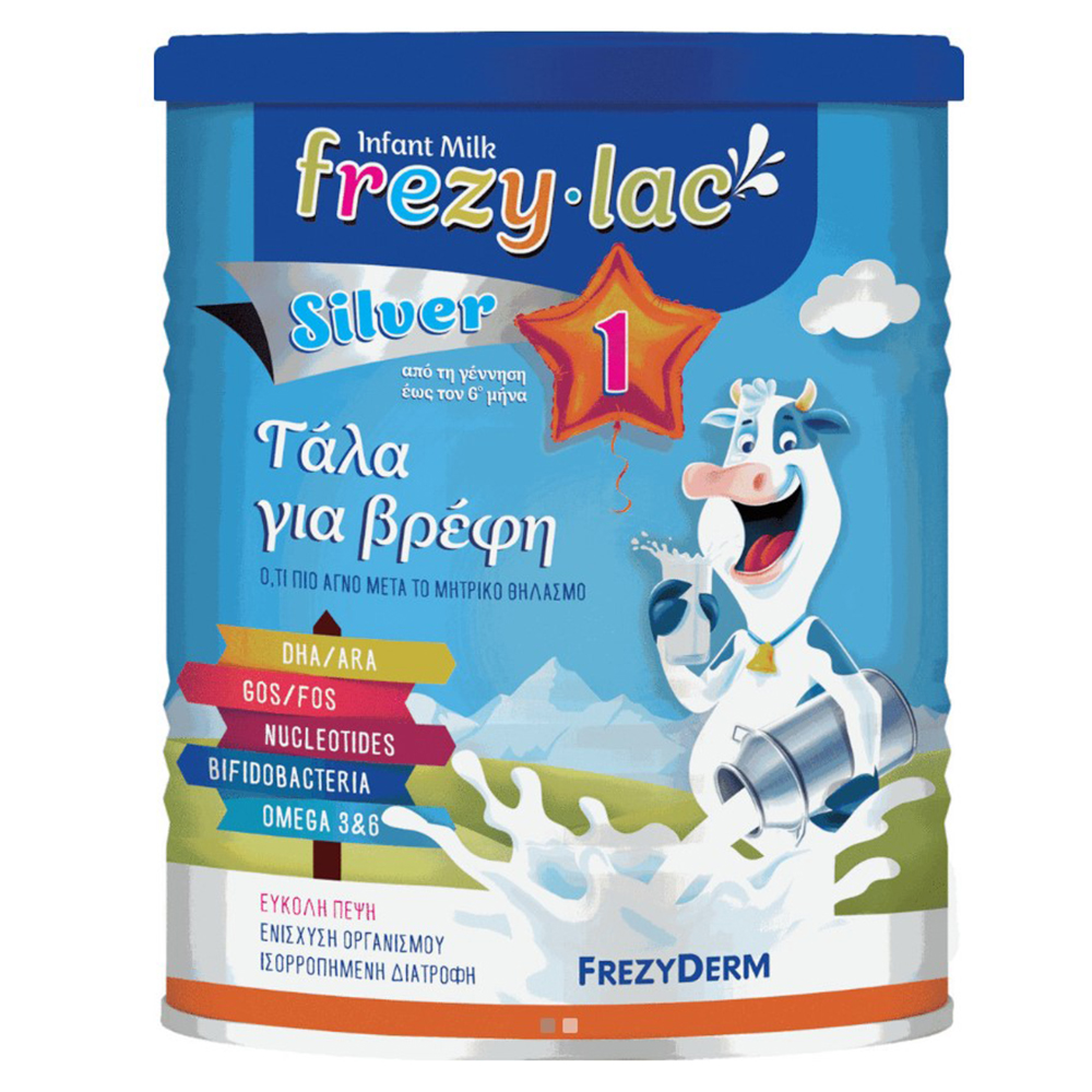 Το FREZYLAC SILVER 1 είναι αγελαδινό γάλα σε σκόνη, κατάλληλο για τη διατροφή του τελειόμηνου βρέφους από τη γέννηση έως τον 6° μήνα.