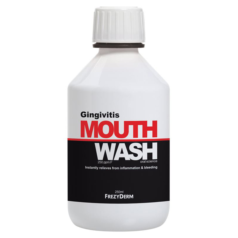 Στοματικό διάλυμα Frezyderm Gingivitis Mouthwash για την αντιμετώπιση της ουλίτιδας.