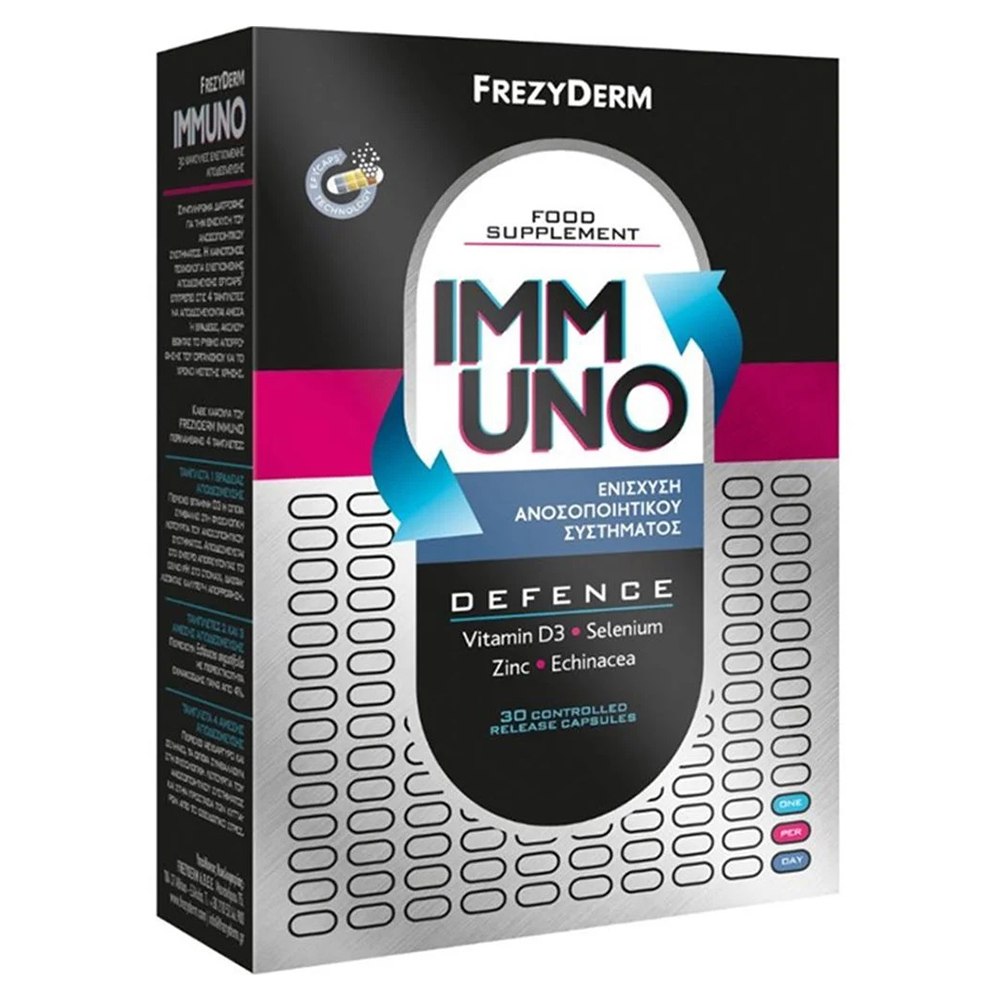 Το Frezyderm Immuno Defence είναι ένα συμπλήρωμα διατροφής για την Ενίσχυση του Ανοσοποιητικού Συστήματος με Βιταμίνη D3, Echinacea, Σελήνιο & Ψευδάργυρο.