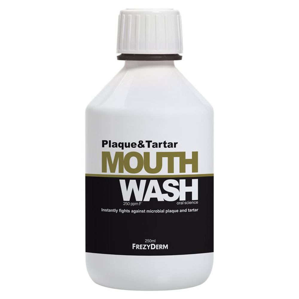 Στοματικό διάλυμα Frezyderm Plaque & Tartar Mouthwash κατά της πλάκας. Φθοριούχο στοματικό διάλυμα για την καθημερινή φροντίδα των δοντιών και των ούλων.