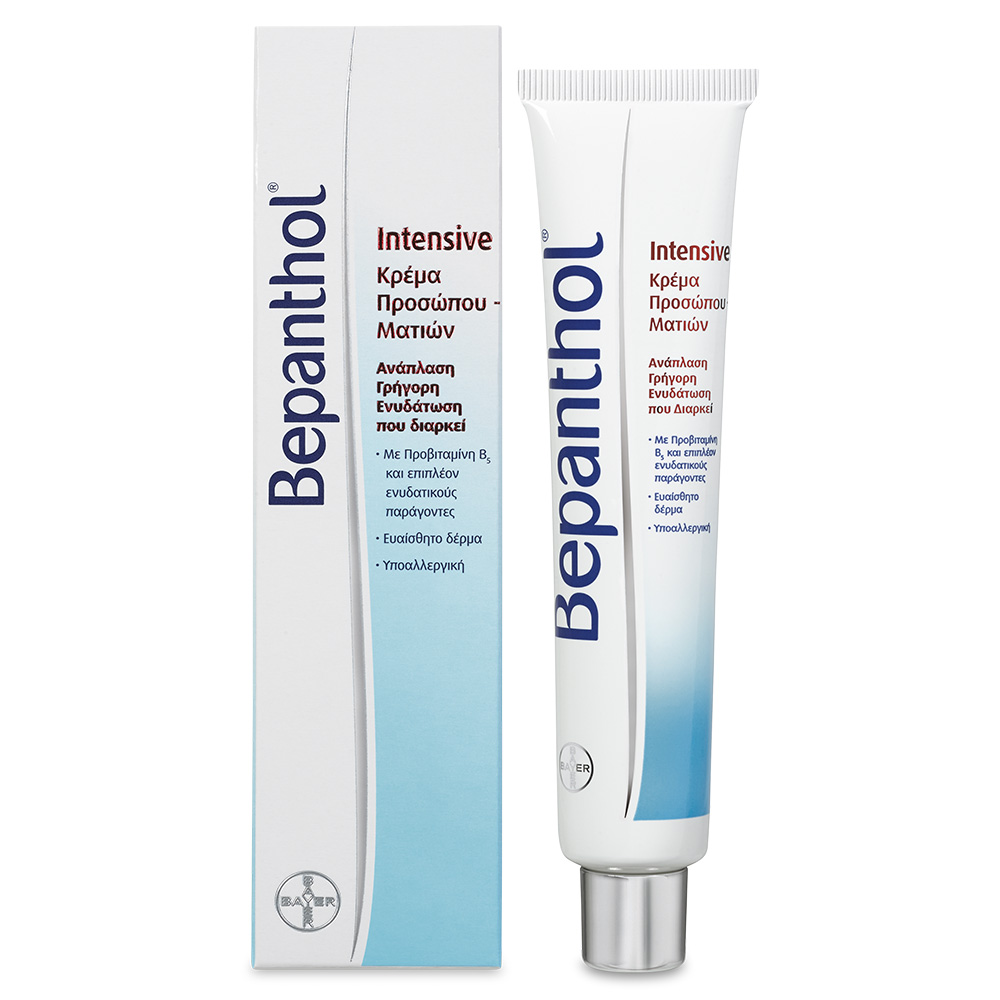 Ιδανική για ευαίσθητη και ξηρή επιδερμίδα, η κρέμα προσώπου – ματιών Bepanthol Intensive προσφέρει βαθιά ανάπλαση και αποτελεσματική ενυδάτωση. Με προβιταμίνη Β5 και πολύτιμα ενυδατικά συστατικά, ενισχύει την επιδερμίδα και την διατηρεί ενυδατωμένη για αρκετές ώρες. Έχει ευχάριστη υφή, απορροφάται γρήγορα χωρίς να αφήνει λιπαρότητα. Χωρίς άρωμα, χρωστικές, parabens ή άλλα συντηρητικά, δεν προκαλεί ακμή και είναι οφθαλμολογικά ελεγμένη.