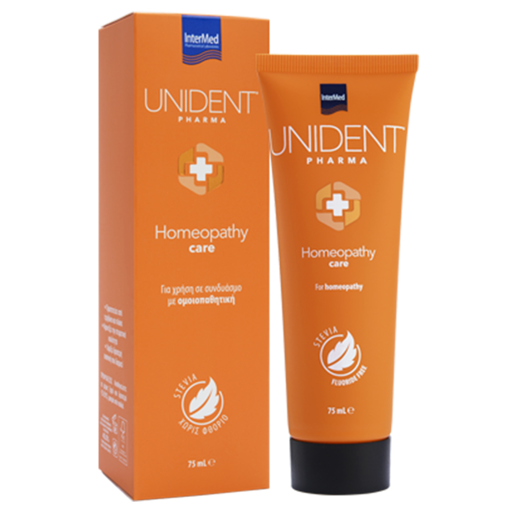 Η Unident Pharma Homeopathy Care είναι μια οδντόπαστα καθημερινής χρήσης χωρίς φθόριο για χρήση σε συνδυασμό με θεραπείες ομοιοπαθητικής.