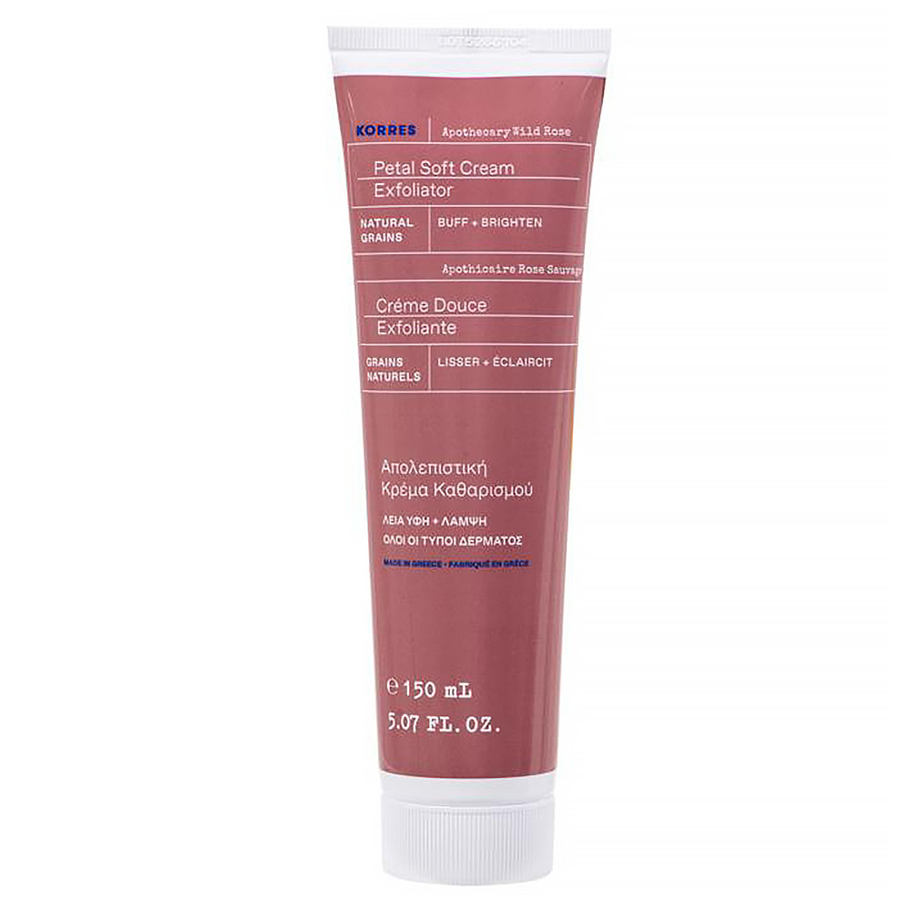 Ήπια απολεπιστική κρέμα καθαρισμού Korres Άγριο Τριαντάφυλλο που απομακρύνει νεκρά κύτταρα, ρύπους και λιπαρότητα χαρίζοντας απαλή και λαμπερή επιδερμίδα.