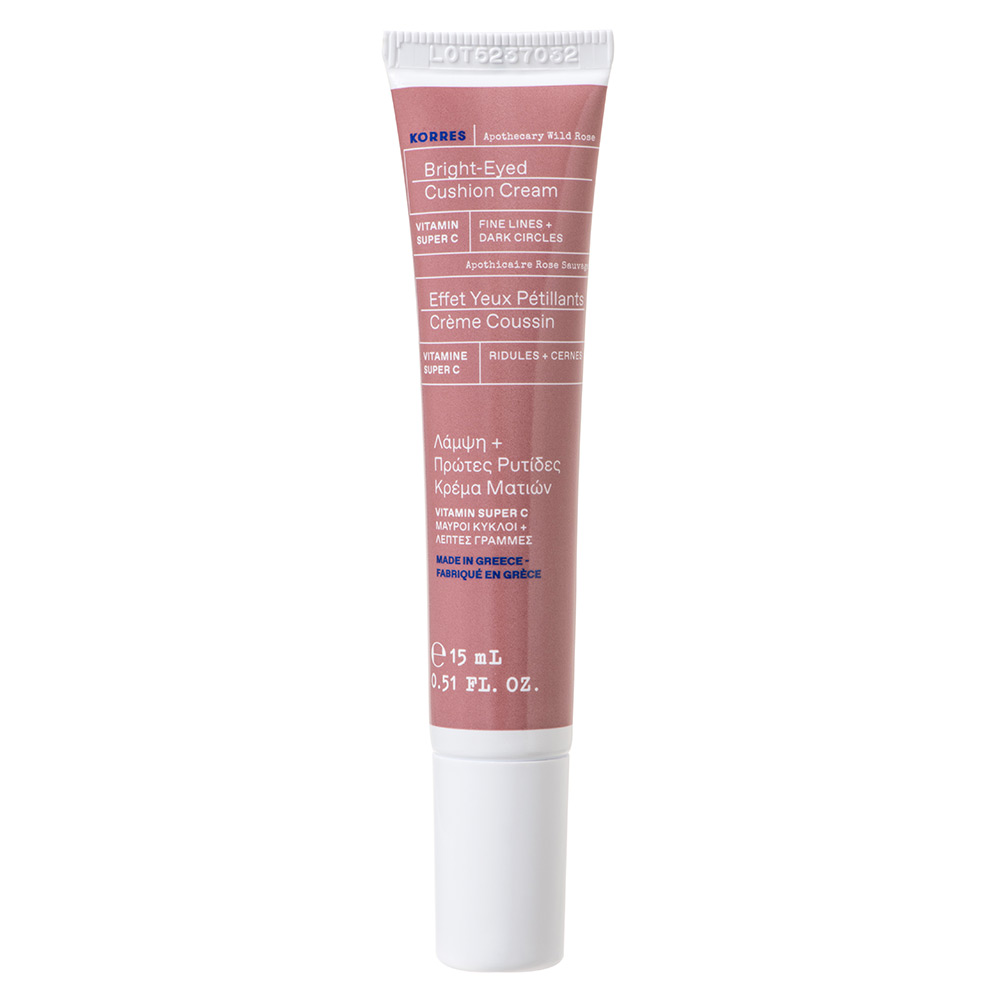 Βελούδινη κρέμα ματιών Korres Άγριο Τριαντάφυλλο για ενυδάτωση και λάμψη που μειώνει την εμφάνιση των μαύρων κύκλων και τις λεπτές γραμμές γύρω από τα μάτια.