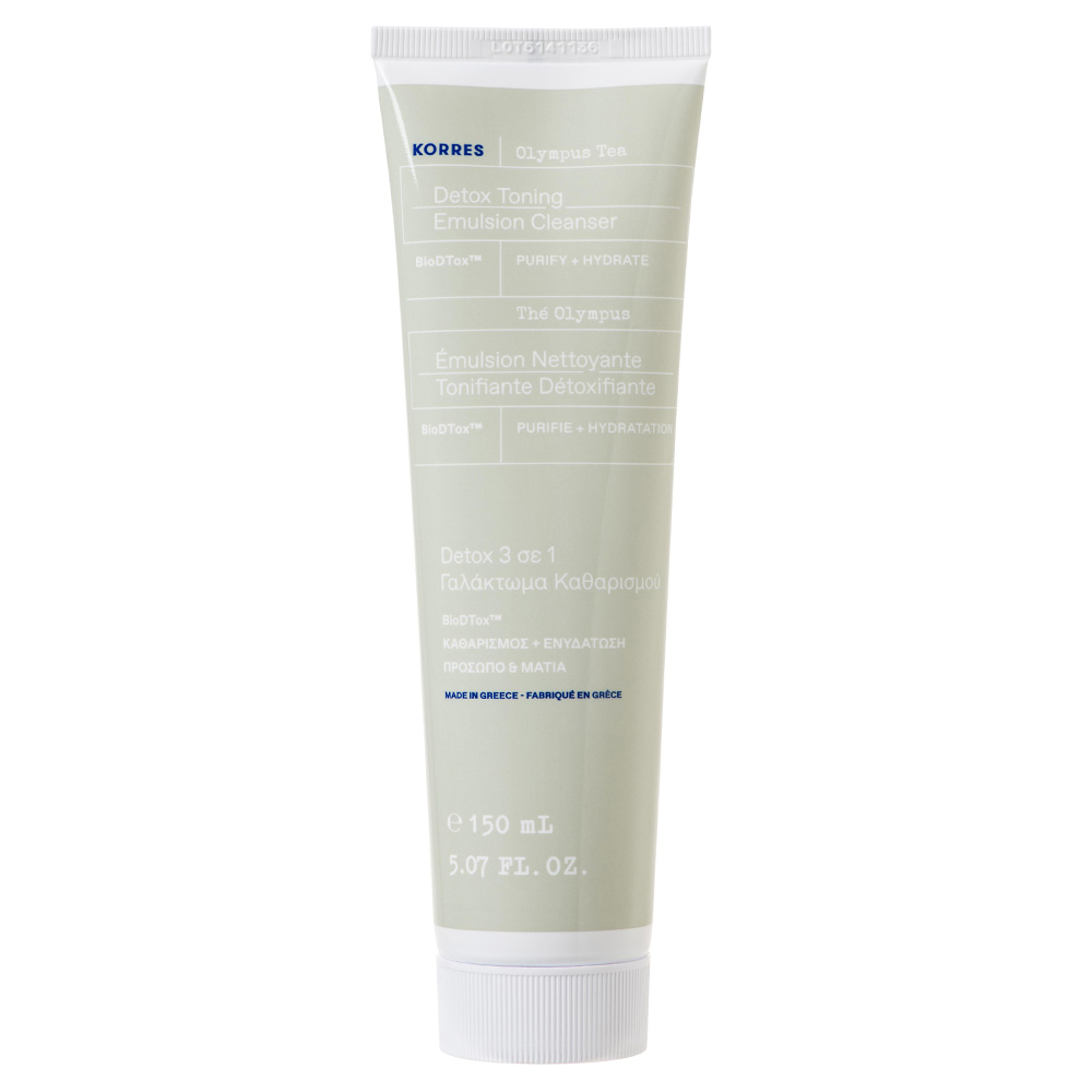 Το Detox Γαλάκτωμα Καθαρισμού 3 σε 1 με Τσάι του Ολύμπου της Korres είναι κατάλληλο για τόνωση και ντεμακιγιάζ προσώπου και ματιών.