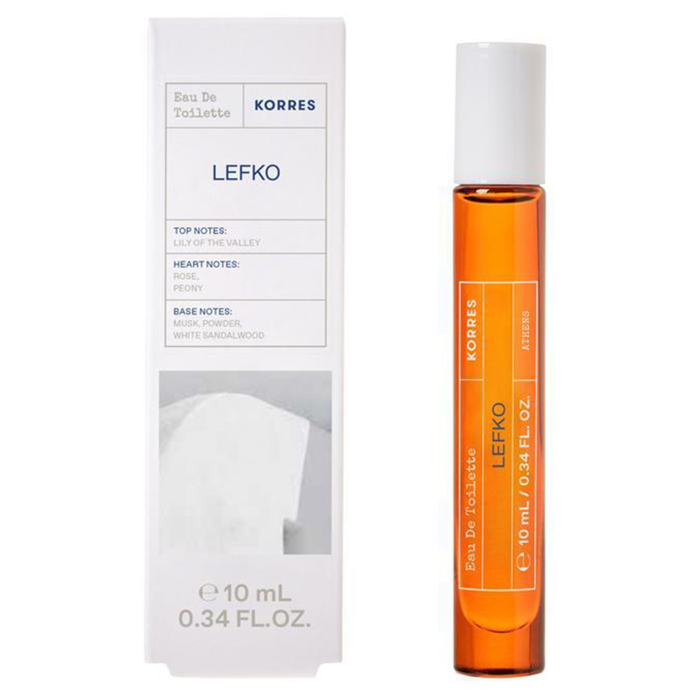 Korres Eau de Toilette Lefko 10ml. Διακριτικό, καθαρό και λουλουδένιο άρωμα με ντελικάτη φρεσκάδα. Ιδανικό μέγεθος τσέπης για κάθε στιγμή.