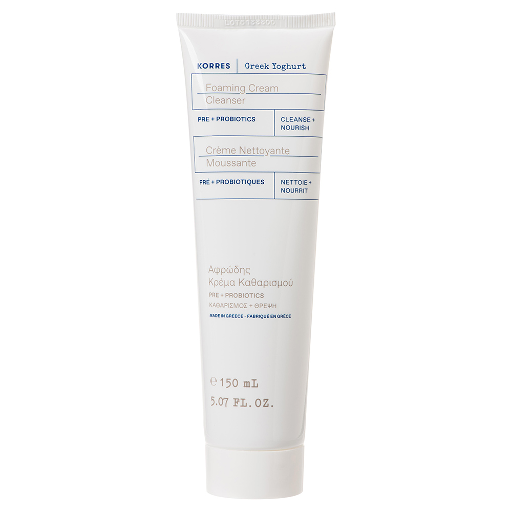 Korres Greek Yoghurt Αφρώδης Κρέμα Καθαρισμού με Προβιοτικά 150ml. Απαλός αφρός που απομακρύνει ρύπους & μακιγιάζ, ενυδατώνει και ενισχύει το μικροβίωμα της επιδερμίδας.