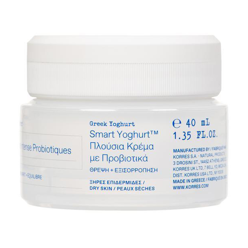 Korres Smart Yoghurt Πλούσια Κρέμα με Προβιοτικά 40ml. Ενυδατώνει εντατικά, ενισχύει το μικροβίωμα της επιδερμίδας και προσφέρει άνεση στις ξηρές επιδερμίδες.
