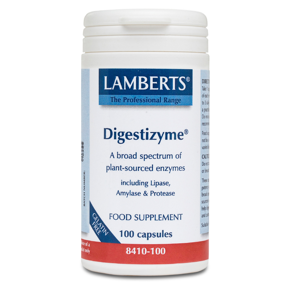 Το Lamberts Digestizyme 100caps περιέχει 100 κάψουλες με ένζυμα για την ενίσχυση της πέψης.