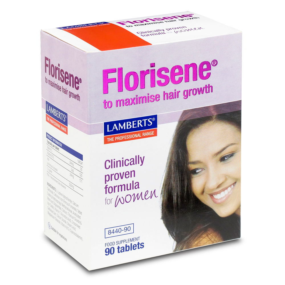 Το Lamberts Florisene For Women αποτελεί ένα κλινικά σχεδιασμένο συμπλήρωμα διατροφής για γυναίκες με χρόνια τελογενή τριχορροή (Chronic Telogen Effluvium, CTE) ένας όρος που χρησιμοποιείται για να περιγράψει την έντονη και επίμονη απώλεια μαλλιών. Το σύνολο των περιπτώσεων γυναικείας τριχόπτωσης μπορεί να διαχωριστεί αιτιοπαθογενετικά σε δύο επιμέρους τύπους: σε τριχόπτωση γενετικής αιτιολογίας ή οφειλόμενη σε παθήσεις του τριχωτού της κεφαλής (20%) και σε χρόνια τελογενή τριχορροή (Chronic Telogen Effluvium, CTE) (80%). Σύμφωνα με έρευνες που διεξάχθηκαν σε πολυάριθμες γυναίκες, ο κύριος αιτιοπαθογενετικός παράγοντας της χρόνιας τελογενούς τριχορροής είναι τα χαμηλά επίπεδα φερριτίνης στον ορό η οποία όταν πέσει κάτω από ένα συγκεκριμένο όριο, το οποίο διαφέρει από άνθρωπο σε άνθρωπο και κυμαίνεται συνήθως μεταξύ 40-70mcg, διακόπτεται ο κύκλος της ανάπτυξης της τρίχας με αποτέλεσμα να αυξάνεται ο συνολικός αριθμός των τριχών που ανευρίσκονται σε τελογενή φάση και να εμφανίζεται κλινικά τριχόπτωση. Σε μερικές γυναίκες, αυτό οδηγεί σε σταδιακή απώλεια τριχών – με τελικό αποτέλεσμα την αραίωση των μαλλιών ενώ σε άλλες γυναίκες, η απώλεια των τριχών είναι περισσότερο εμφανής, οπότε και παρατηρείται μεγαλύτερη ποσότητα απολεσθέντων τριχών στη βούρτσα και στη μπανιέρα μετά το λούσιμο. Τα χαμηλά επίπεδα φερριτίνης στον ορό των γυναικών αναπαραγωγικής ηλικίας αποτελούν ένα ιδιαίτερα διαδεδομένο εύρημα εξαιτίας τόσο της μειωμένης κατανάλωσης κόκκινου κρέατος όσο και της απώλειας αίματος κατά την διάρκεια της έμμηνου ρύσεως. Αξίζει να σημειωθεί ότι η χαμηλή συγκέντρωση φερριτίνης στον ορό δεν σημαίνει απαραίτητα ότι ο ασθενής πάσχει από σιδηροπενική αναιμία, καθώς η χρόνια τριχορροή δύναται να εμφανιστεί χωρίς να αλλάξει τη συγκέντρωση της αιμογλοβίνης. Κλινικές μελέτες που διεξήχθησαν για την τελογενή τριχορροή, έδειξαν ότι εάν η συγκέντρωση της φερριτίνης του ορού υπερβεί ένα ,συγκεκριμένο για κάθε άτομο, επίπεδο, τότε αποκαθίσταται ο φυσιολογικός κύκλος ανάπτυξης της τριχός αλλά και την σημασία πρόσληψης ενός συγκεκριμένου συνδυασμού θρεπτικών συστατικών, τα οποία εμπεριέχονται στο Florisene. Το Florisene® αποτελεί ένα κλινικά σχεδιασμένο συμπλήρωμα σιδήρου, το οποίο περιέχει σίδηρο σε μορφή fumarate που χαρακτηρίζεται από υψηλή απορρόφηση και βιοδιαθεσιμότητα, ένα σημαντικό επίπεδο του απαραίτητου αμινοξέος L-lysine, δύο σημαντικά μικροθρεπτικά συστατικά (βιταμίνη C και B12) που συμβάλλουν στην καλύτερη απορρόφηση και χρησιμοποίηση του σιδήρου από τον οργανισμό. (IRON-SYNERGISTS) και δύο σημαντικά μικροθρεπτικά συστατικά (βιοτίνη και σελήνιο), τα οποία συμβάλλουν στην διατήρηση της υγείας των τριχών.