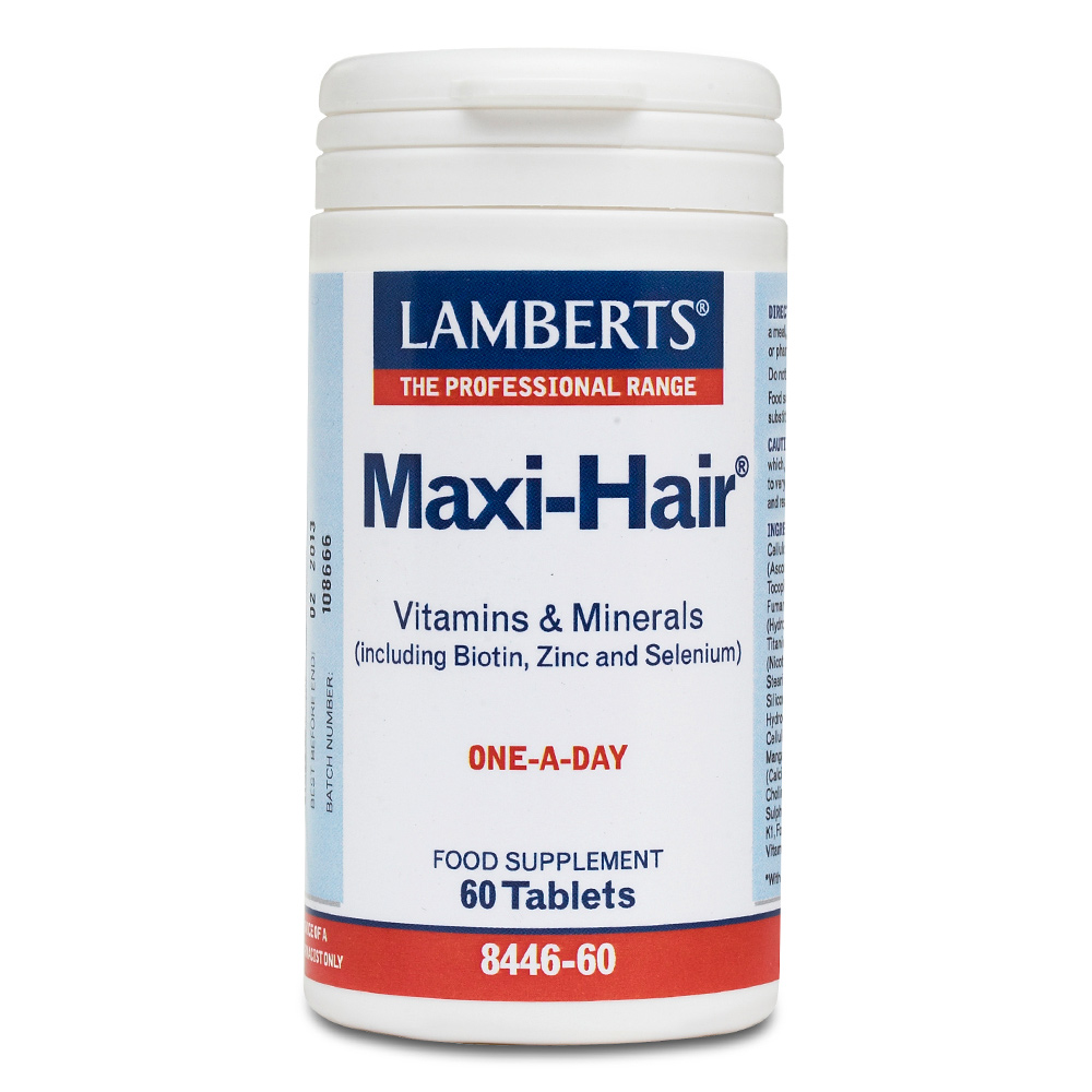 Το Lamberts Maxi Hair New Formula 60 tabs περιέχει 60 ταμπλέτες με μικροθρεπτικά συστατικά για υγιή μαλλιά.