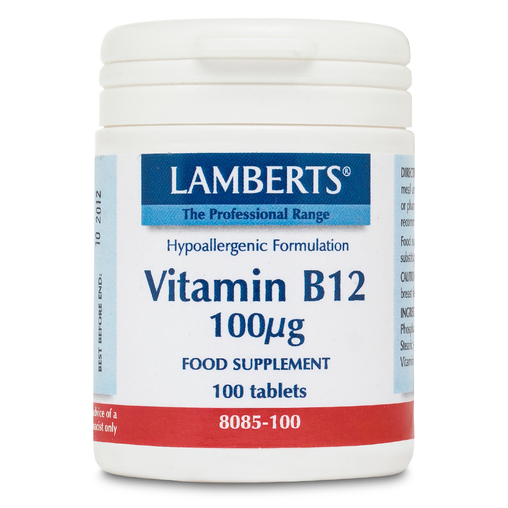 Το Lamberts Vitamin B12 Methilcobalamin 100μg 100 tabs περιέχει 100 ταμπλέτες με Βιταμίνη Β12