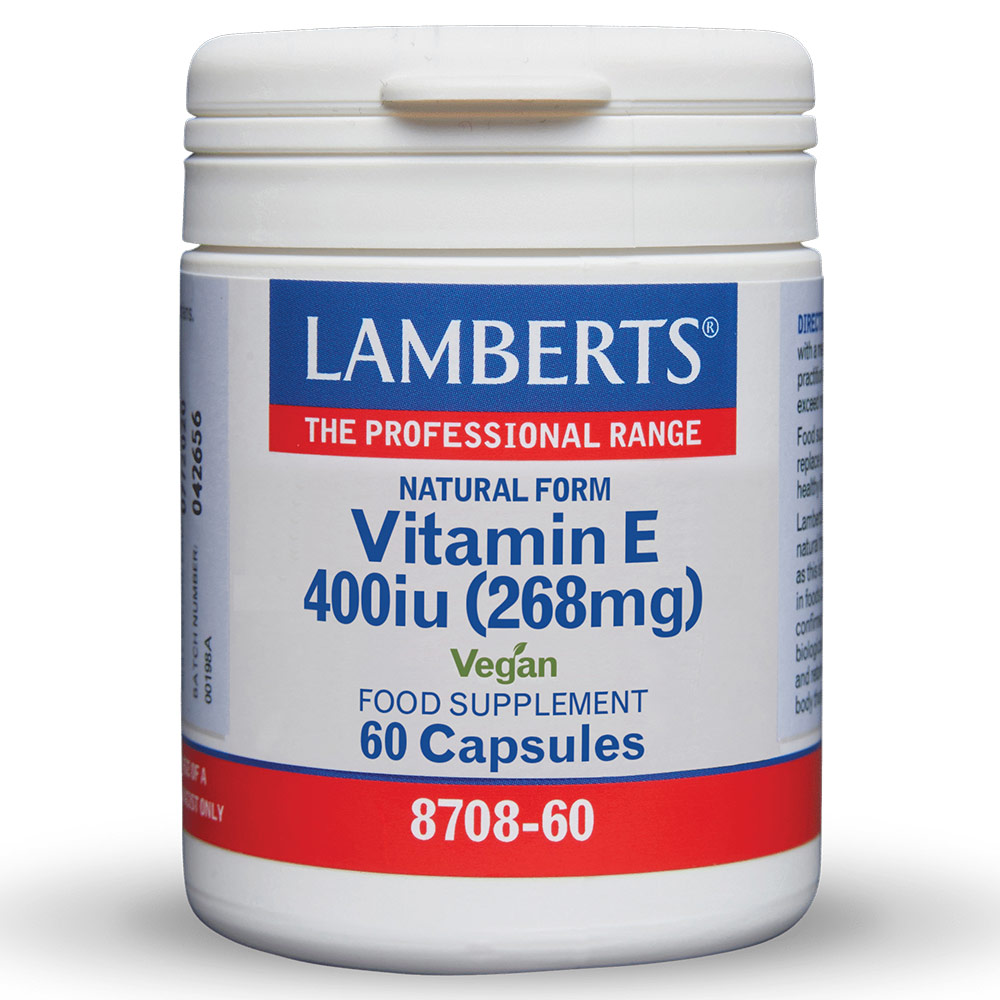 Η Βιταμίνη Ε έχει αναγνωριστεί από πολλούς ερευνητές ως ένα από τα σημαντικότερα διατροφικά αντιοξειδωτικά για τον άνθρωπο. Συγκεκριμένα θεωρείται ως το κατεξοχήν μη- πολικό αντιοξειδωτικό προστατεύοντας τις κυτταρικές μεμβράνες , (συμπεριλαμβανομένων των μεμβρανών των κυττάρων του βρογχικού και του αγγειακού ενδοθηλίου) και τις λιποπρωτεΐνες από την οξειδωτική αποσύνθεση το οποίο επιτυγχάνεται με την αναγωγή των υπεροξυριζών, των ριζών των λιπαρών οξέων και την αναστολή των αντιδράσεων της λιπιδιακής υπεροξείδωσης. Μελέτες δείχνουν επίσης πως συμβάλλει στην διατήρηση της υγείας της καρδιάς, προφυλάσσοντας τα πολυακόρεστα λιπαρά οξέα από την οξείδωση και εμποδίζοντας τη μετατροπή τους σε ακόρεστα λιπαρά οξέα. Η Βιταμίνη Ε συνίσταται επίσης κατά τη διάρκεια της εμμηνόπαυσης όπως και για τη διατήρηση της καλής υγείας του δέρματος και του αναπαραγωγικού συστήματος. Οι τοκοφερόλες (tocopherols) αποτελούν μια ομάδα λιποδιαλυτών χημικών ενώσεων παρόμοιας χημικής δομής (ομόλογες ενώσεις) με έντονες αντιοξειδωτικές ιδιότητες που παρουσιάζουν πολλαπλές φυσιολογικές δράσεις και η πρόσληψη από τον ανθρώπινο οργανισμό σε μικρές ποσότητες μέσω της τροφής είναι απαραίτητη. Συλλογικά οι τοκοφερόλες είναι γνωστές ως βιταμίνη Ε και συναντώνται σε φυτικά έλαια και γενικά σε φυτικής προέλευσης τροφές. Η VIT-E της Lamberts παράγεται από τους σπόρους του ηλιοτρόπιου (φυσική βιταμίνη Ε) υπό την μορφή ‘d’-alpha tocopherol που είναι η πλέον συγγενής με την VIT-E που λαμβάνεται από τις τροφές.