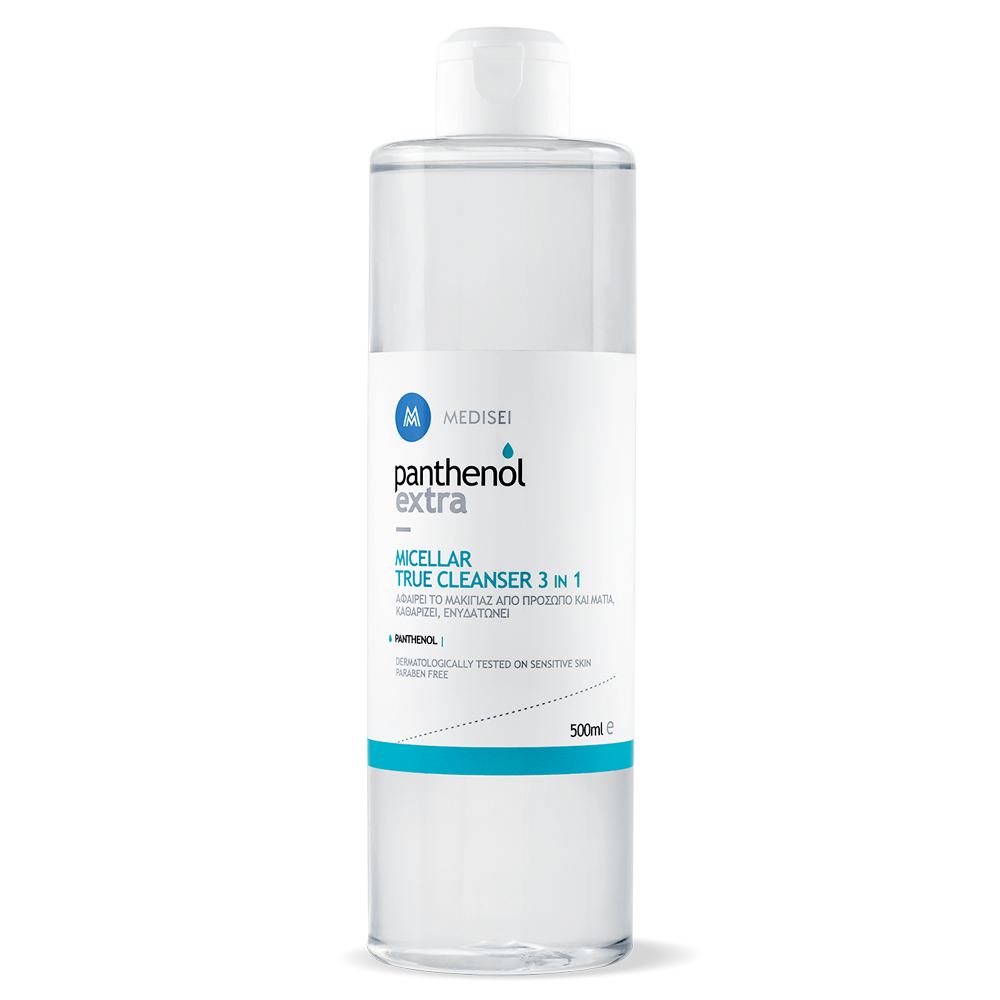 Το Panthenol Extra Micellar True Cleanser 3 in 1 με πανθενόλη είναι ένα καθαριστικό που αφαιρεί εύκολα και αποτελεσματικά το μακιγιάζ από το πρόσωπο, τα μάτια και τα χείλη σας.