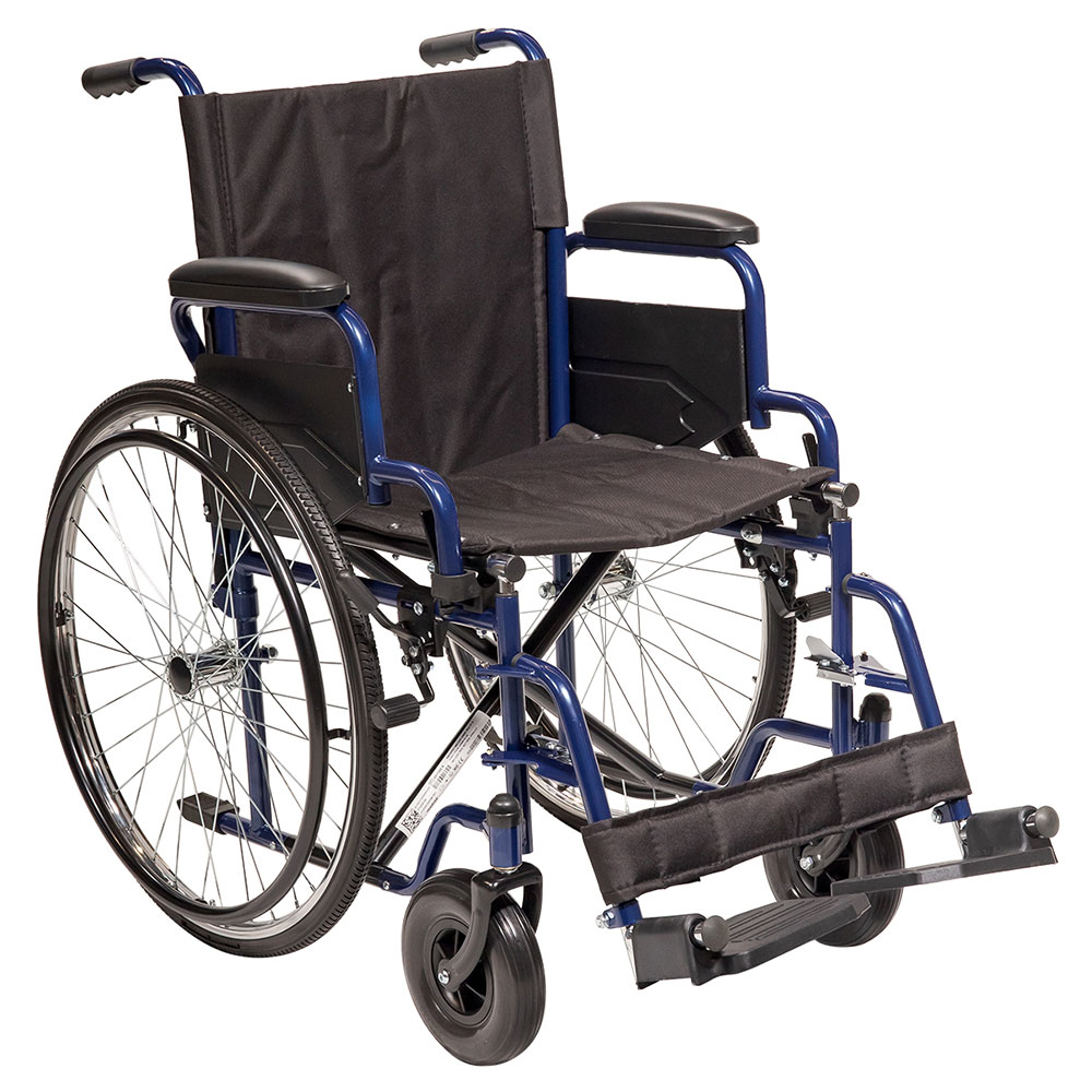 Το Gemini Blue Aναπηρικό Αμαξίδιο 46cm 0811600 διαθέτει υφασμάτινο κάθισμα και εξυπηρετεί χρήστες έως και 130 κιλά.