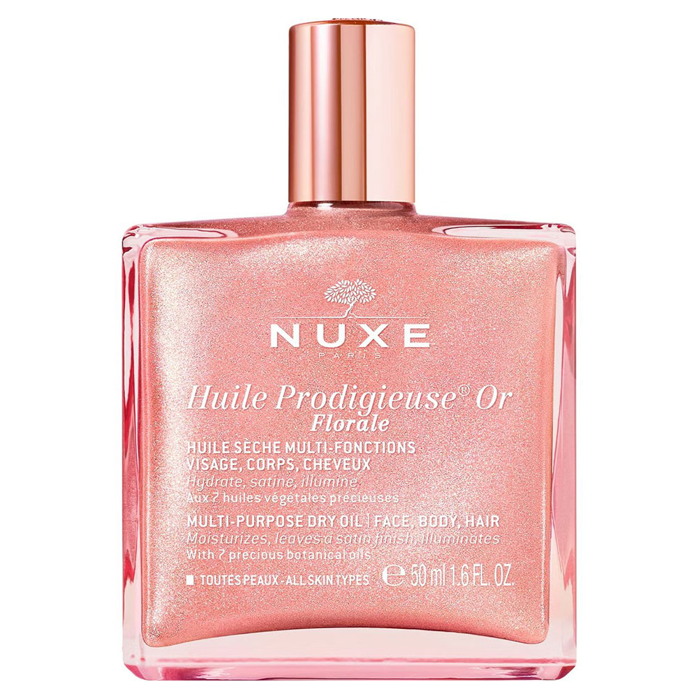 Ξηρό λάδι με λάμψη και ευχάριστο λουλουδένιο άρωμα. Το Huile Prodigieuse Floral Or της Nuxe προσφέρει ενυδάτωση, αφήνει μεταξένιο τελείωμα και φωτίζει το πρόσωπο, το σώμα και τα μαλλιά με μια ακαταμάχητη ιριδίζουσα ροζ χρυσαφένια λάμψη.