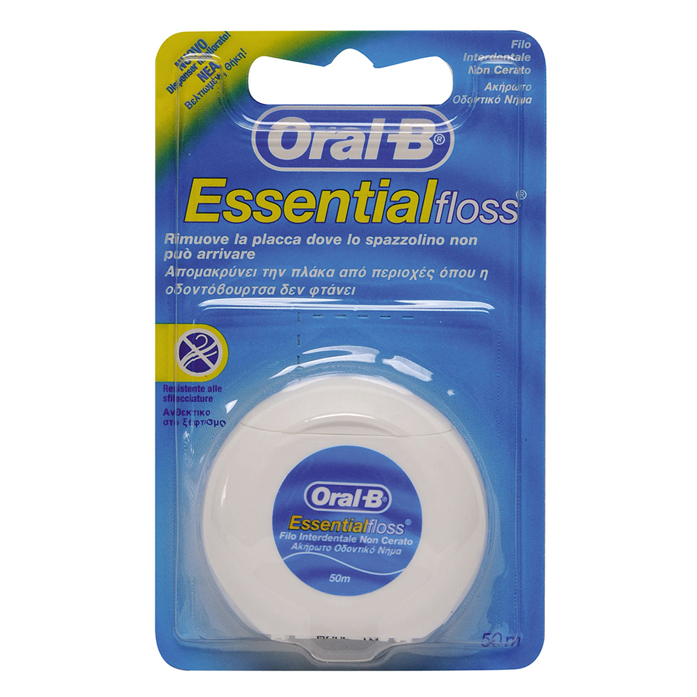 Το βούρτσισμα μόνο του δε μπορεί να καθαρίσει όλες τις δυσπρόσιτες περιοχές που συσσωρεύεται η πλάκα. Το νήμα όμως Essential floss της Oral-B μπορεί.