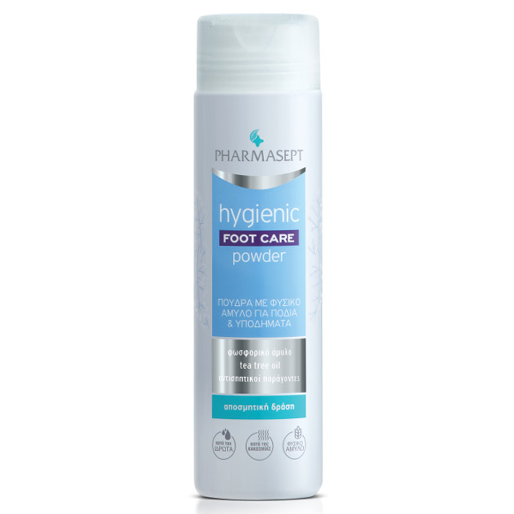 Φυσική αποσμητική πούδρα αμύλου Pharmasept για πόδια & παπούτσια με ήπιες αντισηπτικές ιδιότητες, καταπολεμά ιδρώτα, κακοσμία και σκασίματα
