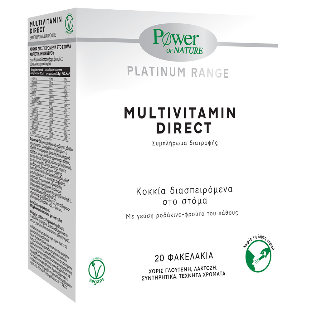 Πολυβιταμίνη σε μορφή κοκκίων άμεσα διαλυόμενων στο στόμα με γεύση ροδάκινο-φρούτο του πάθους και με γλυκαντικό από το φυτό στέβια.