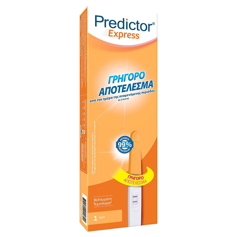 Tεστ εγκυμοσύνης Predictor Express Test για κατ’ οίκον χρήση, το οποίο δίνει αποτέλεσμα σε 1 λεπτό.