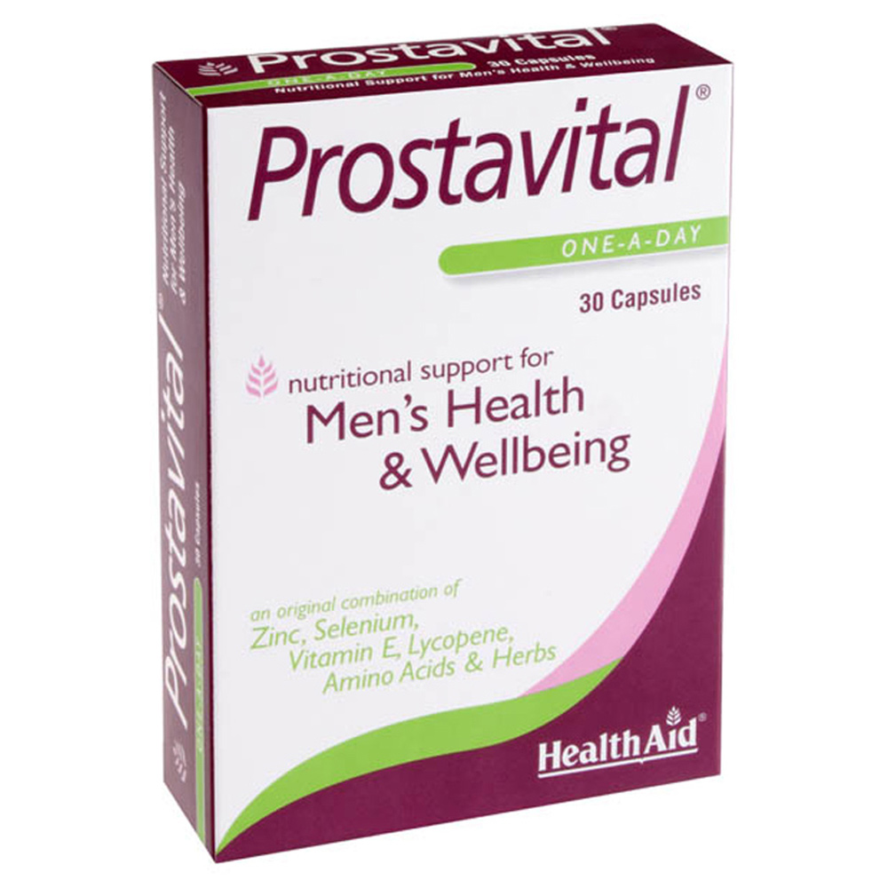 Το Prostavital της Health Aid είναι προηγμένη σύνθεση βιταμινών και μετάλλων με εκχυλίσματα βοτάνων σε συνεργική δράση, για τη διατήρηση και τη προστασία της υγείας του προστάτη. Παράλληλα συμβάλλει στη καλή λειτουργία του αναπαραγωγικού συστήματος και έχει αντιφλεγμονώδη, αντιοξειδωτική και διουρητική δράση, ενώ ενισχύει τη λειτουργία του ουροποιητικού συστήματος. Η μακροχρόνια λήψη του βοηθά να μη χειροτερέψουν τα προβλήματα με τον προστάτη, κάνοντάς το ιδανικό για όσους τα αντιμετωπίζουν.