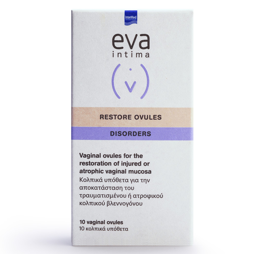 Το Eva Restore είναι επουλωτικός παράγοντας του κολπικού βλεννογόνου με τη μορφή κολπικών υπόθετων για την ενίσχυση και επιτάχυνση της επούλωσης του ατροφικού ή τραυματισμένου κολπικού βλεννογόνου, την ρύθμιση του κολπικού pH στις φυσιολογικές όξινες τιμές, την ενίσχυση της φυσιολογικής χλωρίδας του κόλπου και την ανακούφιση των συμπτωμάτων του ερεθισμού και της ερυθρότητας