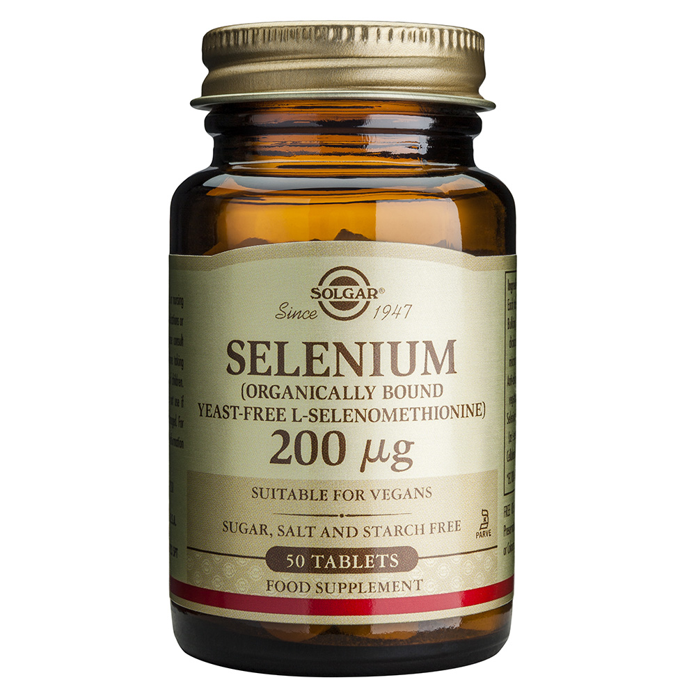 To σελήνιο είναι ένα απαραίτητο ιχνοστοιχείο, με ισχυρή αντιοξειωδική δράση καθώς συμβάλλει στη φυσιολογική λειτουργία του ανοσοποιητικού συστήματος, και του θυρεοειδούς, όπως επίσης συμβάλλει και στην σπερματογένεση. Οι ταμπλέτες περιέχουν οργανική μορφή σεληνίου χωρίς μαγιά. Κατάλληλο για vegans.
