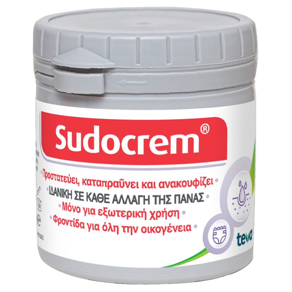 Η Sudocrem είναι μια κρέμα για καθημερινή περιποίηση, που βοηθά στην καταπράυνση, επούλωση και προστασία του ευαίσθητου δέρματος του μωρού σας. Παρασκευάζεται σε μια βάση με υδατο-απωθητικές ιδιότητες που σχηματίζει ένα προστατευτικό φραγμό, βοηθώντας έτσι να σταματήσει η επαφή τυχόν ερεθιστικών ουσιών (ούρα και κόπρανα) με το δέρμα. Επιπλέον, η μαλακτική επίδραση της Sudocrem μπορεί να καταπραΰνει το ερεθισμένο δέρμα που έχει παρουσιάσει σύγκαμα, ενώ αφήνει μια μαλακή αίσθηση στο δέρμα.