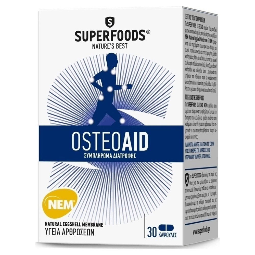 • Το OsteoAid της Superfoods συμβάλλει στην υγεία των χόνδρων και του συνδετικού ιστού.