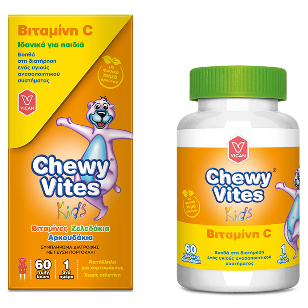 Οι Chewy Vites με Βιταμίνη C είναι μασώμενες Βιταμίνες σε μορφή ζελεδάκια- αρκουδάκια, φτιαγμένα ειδικά για τα παιδιά.