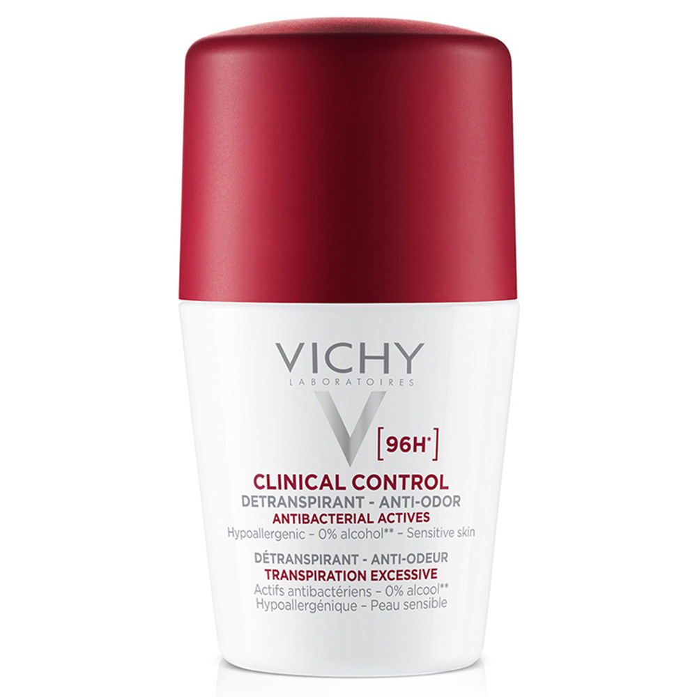 Το Vichy Clinical Control Antitranspirant – Anti-Odor 96h δρά επίσης κατά της κακοσμίας και της υγρασίας, ενώ η σύνθεσή του περιέχει ψευδάργυρο για αντιβακτηριδιακή δράση.