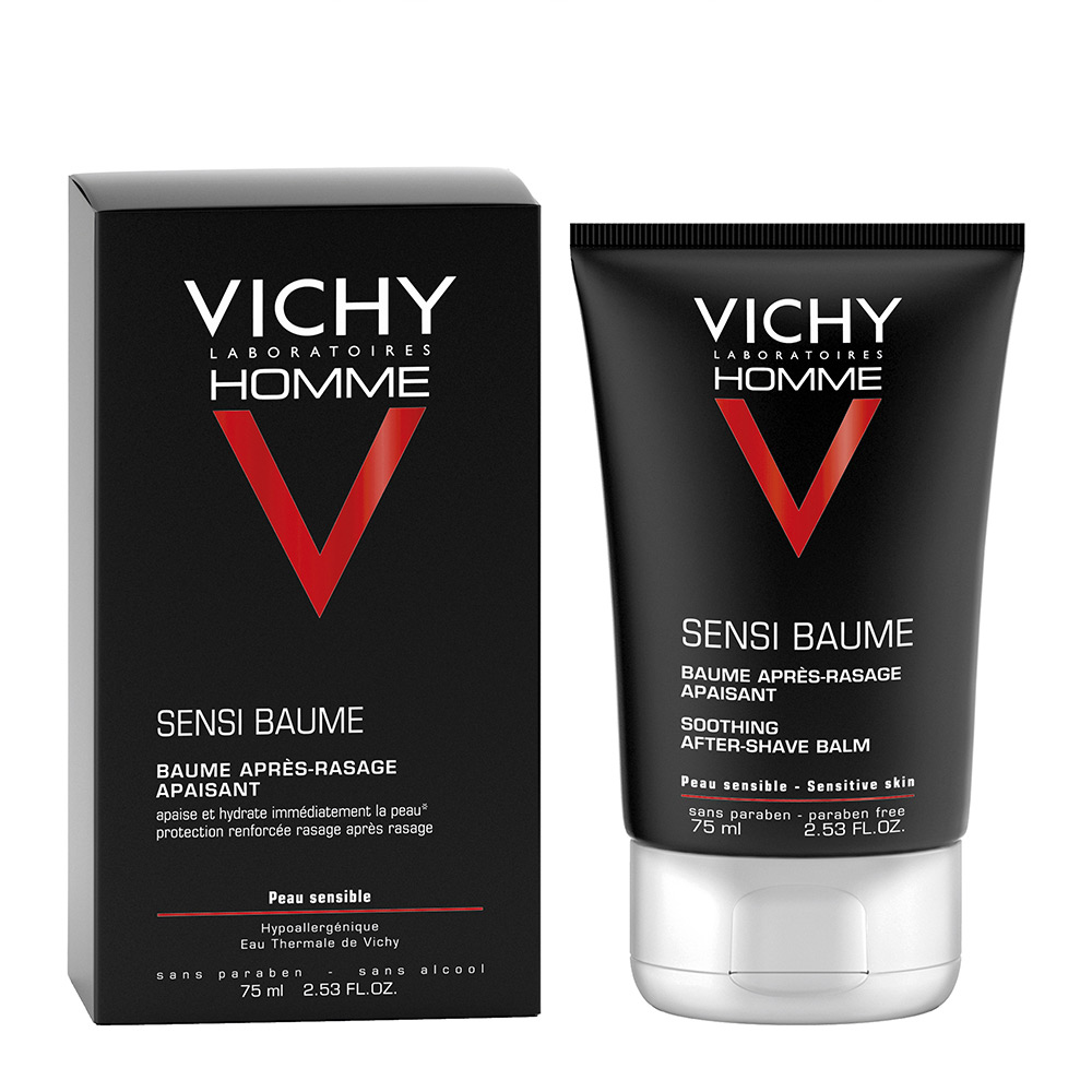 Για άνδρες με ευαίσθητη επιδερμίδα που θέλουν να δώσουν τέλος στις κοκκινίλες και τους ερεθισμούς μετά το ξύρισμα. Κατάλληλο και για πολύ ευαίσθητες επιδερμίδες. Φροντίδα μετά το ξύρισμα που συνδυάζει τη δύναμη του Ιαματικού Νερού της Vichy, πλούσιου σε ιχνοστοιχεία, με Ασβέστιο προσφέροντας διπλή δράση για την ευαίσθητη επιδερμίδα. Ανακουφίζει άμεσα την επιδερμίδα. Δυναμώνει την επιδερμίδα μετά από κάθε ξύρισμα. Η επιδερμίδα είναι πιο δυνατή και λιγότερο αντιδραστική στο ξύρισμα. Χωρίς Paraben